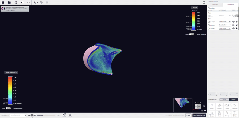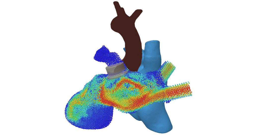 At Virtonomy, we use the SPH method to accurately simulate how medical devices interact with patient anatomy and physiological conditions. This particle-based approach enables highly realistic modeling of fluids and soft tissues, capturing detailed behaviors that conventional methods often miss.